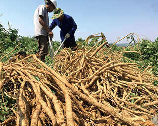 粵森優(yōu)質(zhì)牛大力種苗成熟后現(xiàn)場開挖結(jié)薯效果生長快、結(jié)薯多、產(chǎn)量高、藥效有效成分高